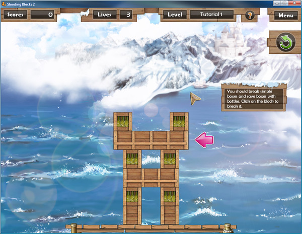 每关有三条命,任务是尽量保护有瓶子的箱子,同时击碎空的箱子。