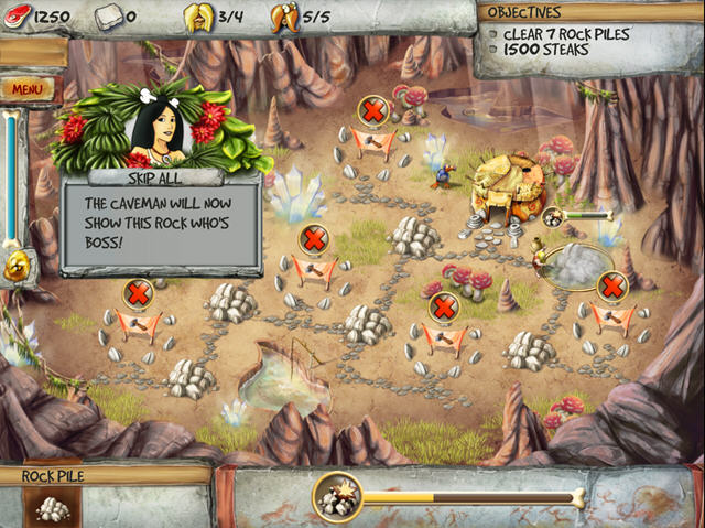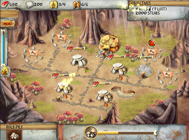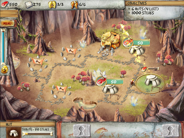 《时代开创者:穴居人的预言》(The Timebuilders Cavemans Prophecy)这是一款益智类关卡游戏,类似愤怒的小鸟,开始通过建造房屋和收集资源一点点发展,后面花样繁多,挖石头、用肉撑死食人花、砸西瓜、种恐龙蛋等等。这款游戏一共有四十关,玩下来感觉还是蛮爽的。