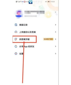 4、找答案浮窗:手机在线答题如何查答案?开启找答案浮窗,截屏搜题更方便!