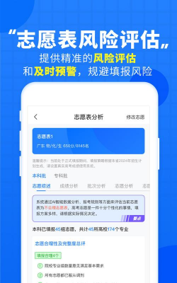 5. 志愿风险评估: 检测志愿表的风险分析,及时反馈填报结果,帮助考生更好地了解志愿填报情况,并可把志愿表Excel导出到本地编辑调整。
