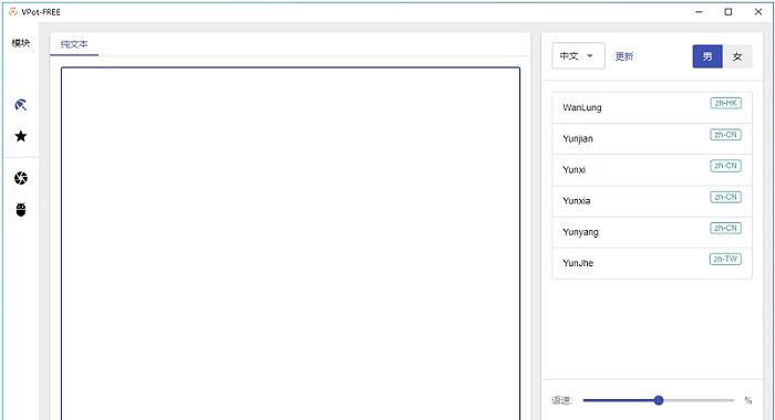 vpot文字转语音软件pc版本顾名思义是免费无广的文字转语音的工具,可将任意文字内容转换为流畅的语音文件,支持多种语言的转换,包括但不限于普通话、英语、日语等主流语言。它还支持港普(香港普通话)和台普(台湾普通话),这使得它在处理不同地区的语音需求时更加得心应手。