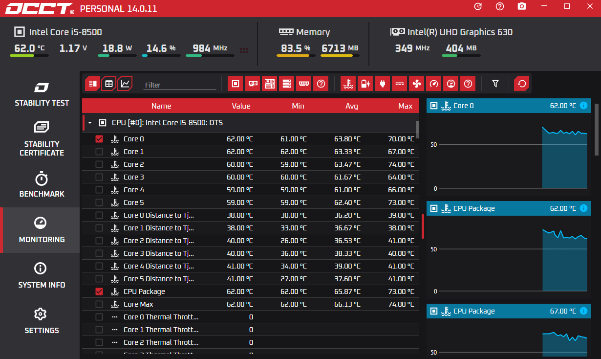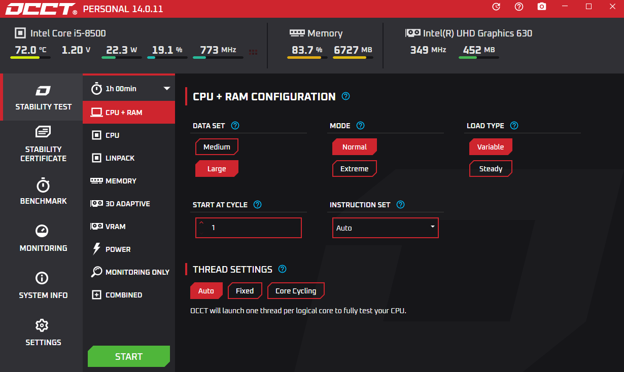 occt电脑电源检测软件暂时无法设置中文,大家可以等待下一个版本,作为笔记本和台式电脑电源检测软件,occt可以实时监测cpu、gpu、电脑电源的温度,还可以对电压进行功耗测试,采用硬件检测和压力测试等多种方式,测试结果更加精准,可行度较高,能够帮助大家检测电脑电源有没有问题。