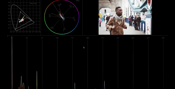 矢量示波器 (Vectorscope):显示图像中的色彩信息,帮助准确调整色调和饱和度。
