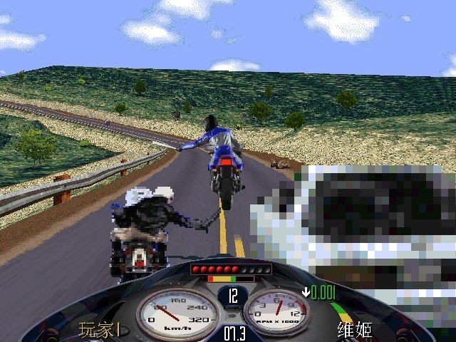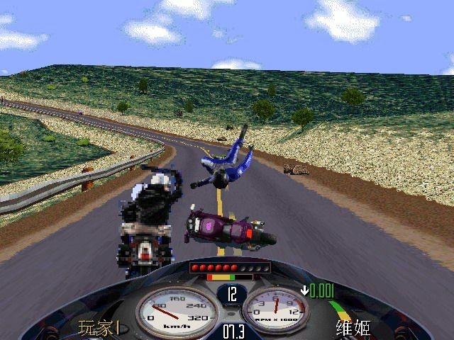 超车, 刚开始时会摩托有点落后,按住向前键不放,摩托会自动加速,不一会儿,就会跑在前几名。
