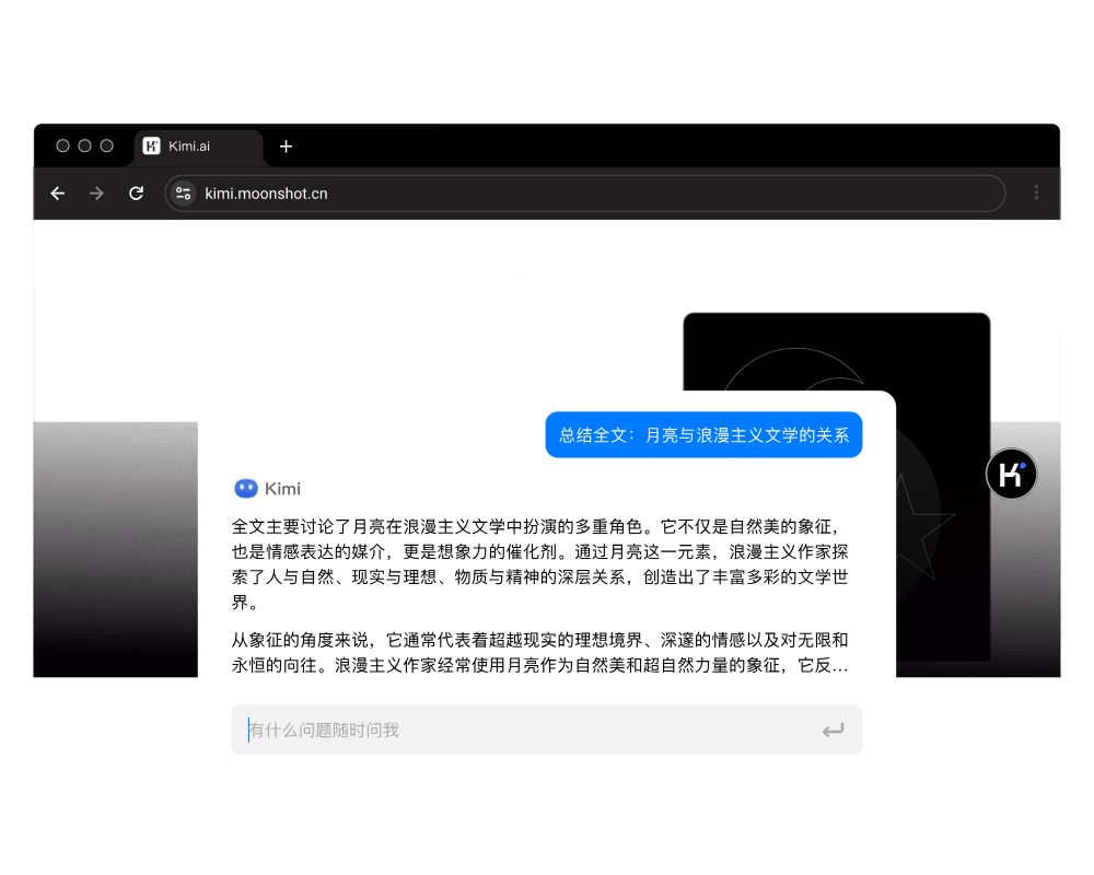 按钮来唤起 Kimi 帮你总结网站内容,或者解答问题。