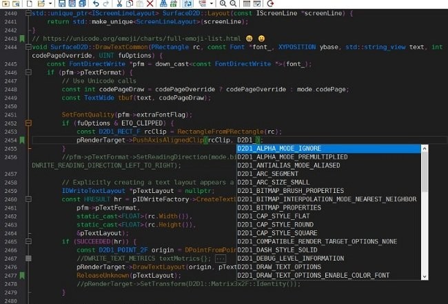-支持Direct2D模式下的彩色字体(Windows 8.1及更高版本),用于显示彩色表情符号和其他