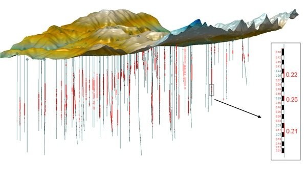 地质工作应用中突出的特点是不仅可以通过数据库和三维地质模型对矿床进行空间分析和品位计算,而且对于所有的地质信息(如地质界线,工程位置和分析数据)的提取,不再是手工绘制来实现制图和计算,这将是地质工作的一项变革。