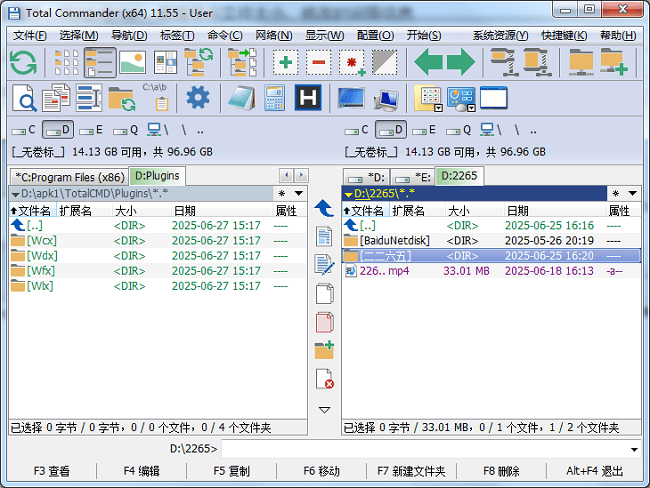 TC的双窗口设计是效率的灵魂!左边窗口打开源文件夹,右边窗口打开目标文件夹,直接拖拽即可完成复制/移动操作。