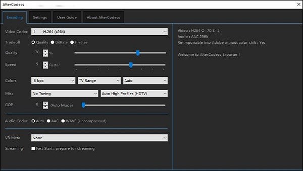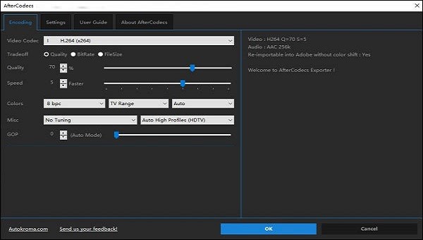 AfterCodecs为您带来所需的所有编解码器和功能的一致性,而无需Quicktime以及in .MP4和.MOV