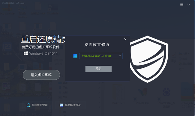 diskfreeze重启还原精灵免费版电脑版官方软件能够帮助用户轻松还原系统,免费进入一个虚拟系统,相当于拥有了一个额外的电脑系统,拥有电脑性能不变,能够在这个虚拟系统里面玩电脑的游戏、使用电脑的软件和工具!