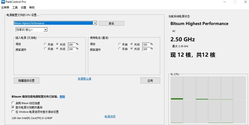 Bitsum 动态加速:根据电脑活跃或闲置的状态自动切换电源计划。在你使用电脑时将始终保持在「Bitsum Highest Performance」模式运行。