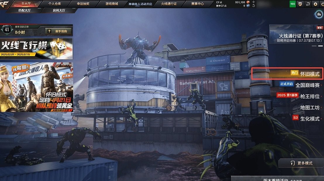 cf穿越火线怀旧服电脑版在2025年第二季度正式上线,无论是游戏大厅的界面,还是游戏模式,都还原成经典游戏画面,估计80、90后应该很熟悉了,老界面让大家有一瞬间回到年轻的自己;在游戏大厅,选择怀旧模式,即可开始找回记忆,值得一提的是,老兵回归礼包非常丰富,当年需要付费的神枪,现在免费送给大家体验。
