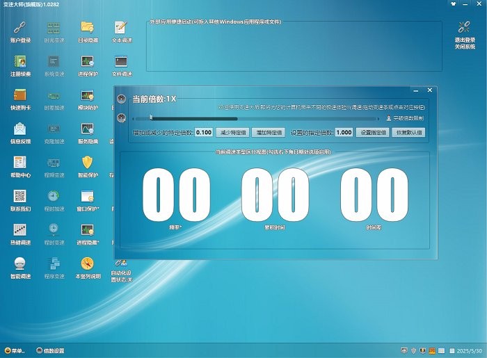 内含“系统变速”、“进程变速”等多种变速小程序。变速微调精度可达0.001位,变速功能十分强大。