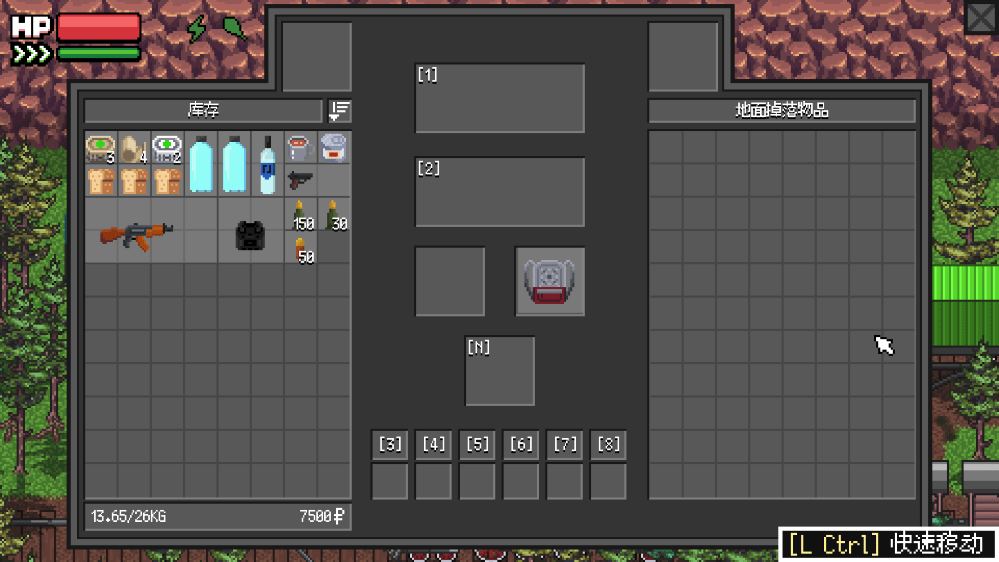 后期入场时使用增加12%移动速度的背包,回来时背40kg的棺材包(红军购买)。