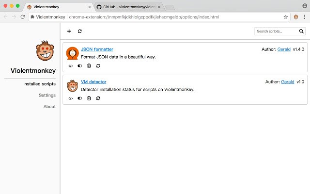 violentmonkey暴力猴脚本插件官方最新版能够作用在各大浏览器上面,谷歌、360浏览器均支持,作为功能拓展程序,用户在添加成功以后能够自定义脚本,屏蔽广告骚扰,更便捷的下载视频等。