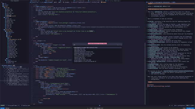 强大的文件树,可以查看/修改文件树、展示git信息、查看当前Buffer或有Git改动的相关文件等。