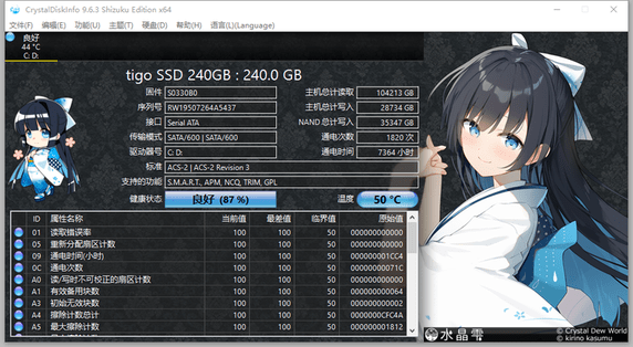 CrystalDiskInfo水晶雫版主要特点