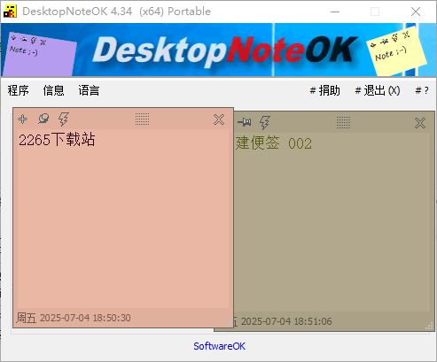 desktopnoteok中文绿色便携版是在电脑上使用的桌面便签小工具,用户可以自由设定便签的主题、背景颜色和文本颜色,可以选择记录的字体,能够选择标签的悬浮位置,还能调节透明度。