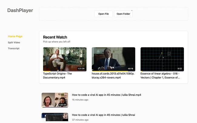 支持文件/文件夹:观看一个视频就用文件打开,一系列视频就用文件夹打开,DashPlayer 都能支持。
