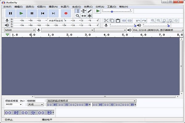 点击并打开Audacity,进入Audacity工作界面,