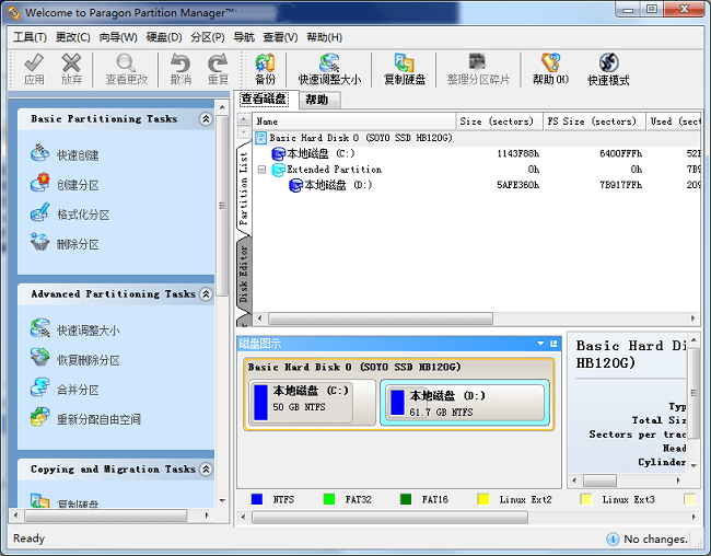 3.对磁盘进行分区,并可以在不同的分区以及分区之间进行大小调整、移动、隐藏、合并、删除、格式化、搬移分区等操作。