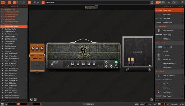 overloudthupremium软件效果器直装版能够模拟出各种乐器的音效,包括大家熟知的吉他和贝斯,包含了一些知名品牌的模型,能够让用户有不一样的音效体验,超多经典的吉他放大器可以选择,同时还支持箱体模拟。