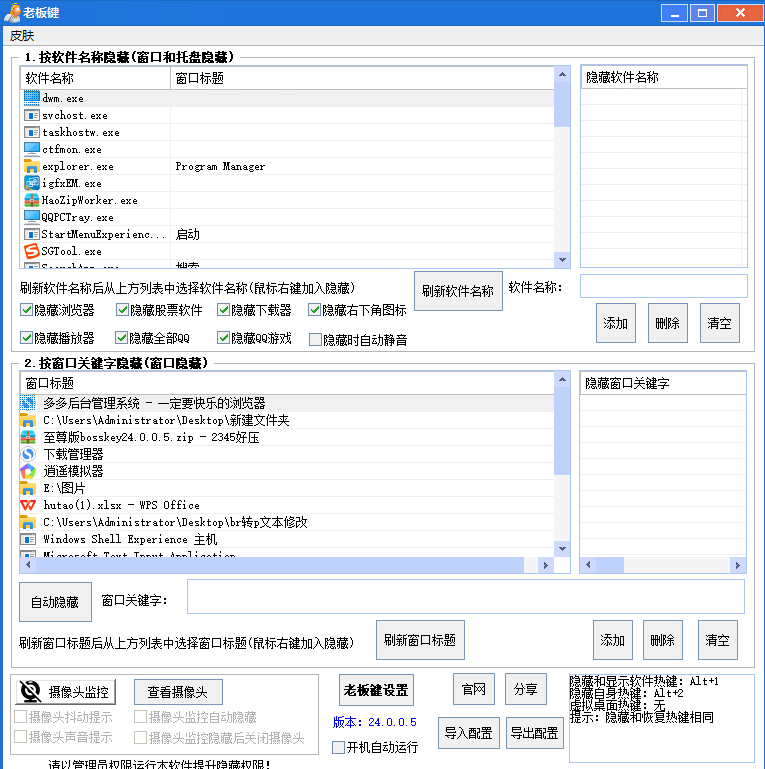 老板键支持修改为任何名称运行,无任何功能限制!无任何锁主页!