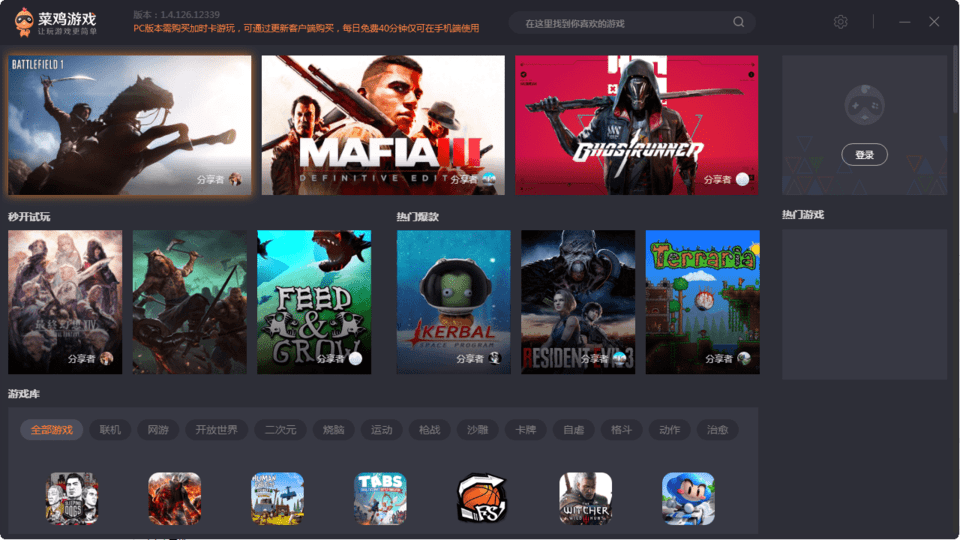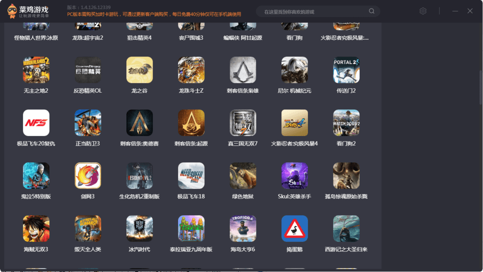 菜鸡游戏电脑版是一款超级云游平台,同时也是最好用的手机变电脑游戏软件,在这里轻松玩耍dnflol等主流游戏,还支持外接键鼠,随时随地让你开心操作,感兴趣的朋友快来点击下载吧!