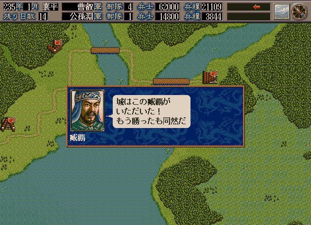 消耗移动力的公式:平地阵型在平地为2,树林为4,山岳为6,水里为8。山岳阵型在平地为4,树林、山岳为2,水里为8。水阵在水里为2,平地为5,树林为6,山岳为8。另外藤甲使平地、山岳阵型在水上的移动力加一格,道路对山岳和水阵的支持程度不太明确,但比平地消耗的少一点。几个部队相连成方阵时,防御力有一定的上升指数,具体公式不清楚。部队被围后,防御力下降,即使有特技“无双”也一样,充其量可能是下降得稍微少一点,但吕布除外。