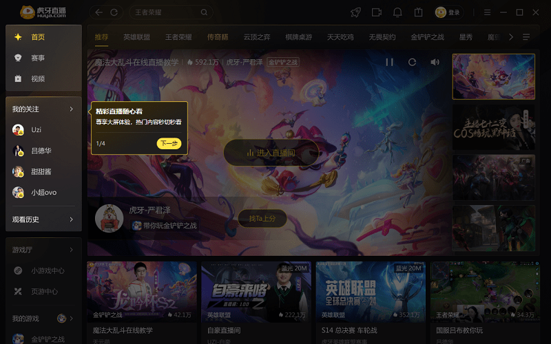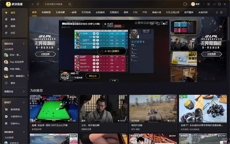 虎牙直播pc版是一款能够让广大用户可以在电脑上也可以看直播的全新播放器软件,在这里拥有丰富的直播内容等你来观看,各种不同类型这里都有,同时还可以与主播进行互通,丰富内容等你来体验,感兴趣的话就来试试吧!