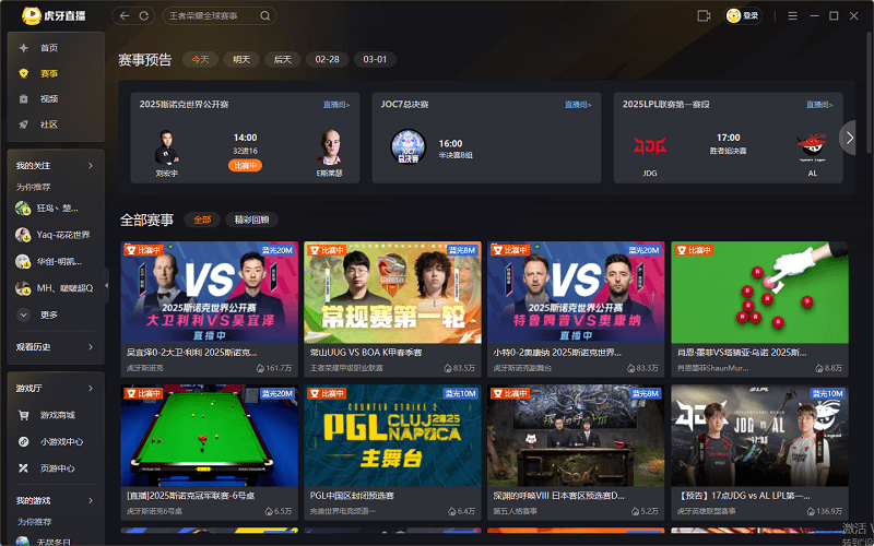 3、上百款热门游戏、数千场赛事直播,每天官方平台实时热播不停歇!