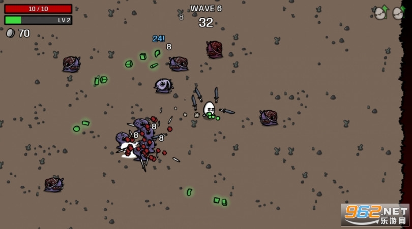 收集材料以获得经验并在敌人的浪潮中从商店中获取物品。