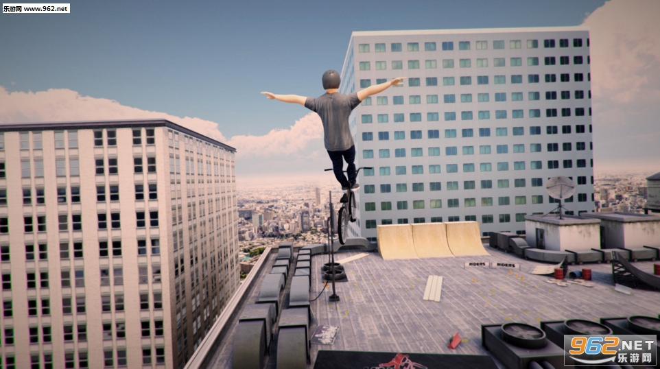 整座城市都是你的舞台,我们要操纵着单车在城市中“翱翔”~游戏风景画面做的十分漂亮,光亮感十分柔和。游戏中有坡道的地方都是你可以飙车的位置,加速冲上坡道摆出POSE,可以获得评分,越难的动作需要做出的按键越复杂,不要担心,游戏有指导训练按键模式。玩家可以在该模式下多训练几次再进入正题,楼顶、体育馆、路边...都是你的show place。不过游戏中玩家需要考虑在空中滞留的时间,如果是加速度够快的话飞的够高就能多做几个动作获得更高的评分,但是如果时间不够强行做动作的话是会摔得很惨的哦~《小轮单车》。