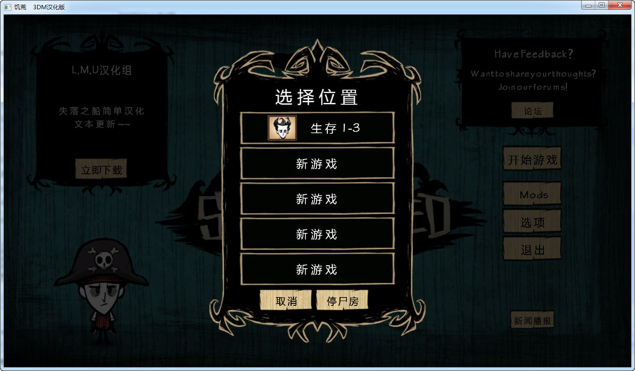如果要玩饥荒:失落之船,请在下面的位置勾选上“SW”,默认是没有勾选的。