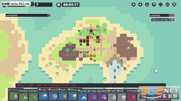 玩家扮演一个打牌爱好的造物主让自己捏下的第一个像素小人活在随机的小岛之上,满足小人的吃喝拉撒之外还要慢慢的给小人提示让他们揭开自然之谜,小人的IQ智力也会越来越高,从石头工具都不会用到做出宇宙飞船,从野外采食到粮仓满地.
