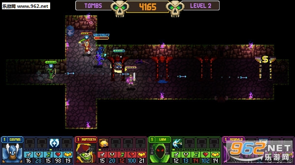 联机玩法中玩家可以从12名能力、造型各异的任务中选用,并进行地牢比拼。作为10分钟的混乱战斗,多达4名英雄将进入随机的地牢中和成群的敌人互相战斗,杀死眼前的每一个怪物,所有的这些都是为了获得地牢联盟中的冠军。