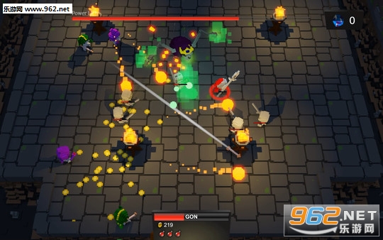 roguelike游戏向来没啥剧情,本款同样也是,大致背景就是四个臭皮匠投资失败,只好冒险去地牢寻找宝藏,当然宝藏哪这么容易找,一路需要挑战很多怪物,同时还有4个BOSS关卡等着玩家挑战。四个可选择的角色除了初始武器不一样外,就只有外貌不一样了,并没有基础属性的差异,也没有各自的技能,不过话说回来,100MB不到的游戏能有roguelike成分就不错了,再复杂点岂不逆天了!