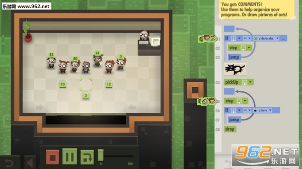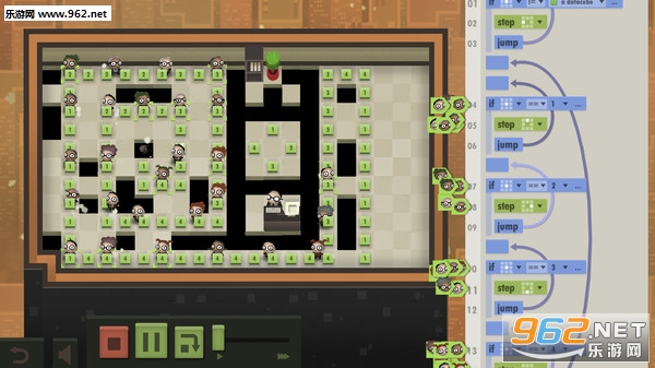 游戏本身难度不大,但是优化会稍微有些难度。程序执行和调试时以动画形式展示每一步的具体步骤,并能单步前进和回退,还能调整动画速度,非常适合未接触过编程的玩家了解编程思想和玩耍,