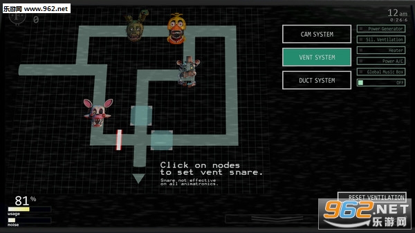 比如加热器、A/C、音乐盒、发电机等等。好像这些都还是不够的,你还需要在通风口上设置机关陷阱,收集金币从柜台上购买物品,一如既往的密切关注着透露着恐怖氛围的“地狱之门”,不是一个,而是两个!