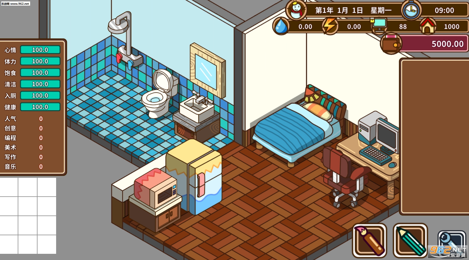 《宅人传说》是一款休闲向的策略养成类游戏,顾名思义,我们将扮演一名宅男~但是在家的日子我们要做什么呢?还是需要养活自己的!所以你可以选择学习编程、绘画等在家就能够干的事情,然后实现你在家上班的美梦。