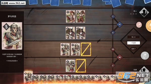 每层(罗马、中国、波斯、印度) 有其独特的特点和色彩。所有的卡分为远程单元和短程单元。也有特殊的卡具有独特的效果。你必须仔细规划每一个战役的战略:选择军队。在每一轮中获胜,总的来说,他们的军队将更加强大。