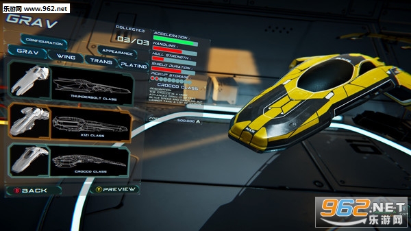 自定义你的重力赛车(Grav),随心所欲,但请明智地选择:决定一项升级可能代表得放弃另一项升级。以战略为主来订制你的重力赛车,可在比赛中或局势堪虑时占得上风。除了自定义的选项以外,可解锁的皮肤将免费提供。