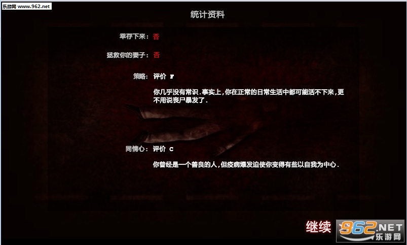 A+是游戏能够打出来的最高评价。但策略和同情心都是A+似乎不可能。一个结局,在“策略”那一项打出A+以后,“同情心”一项的评价是F,也就是说要在丧尸爆发的情况下确保个人生存可能要冷酷无情。