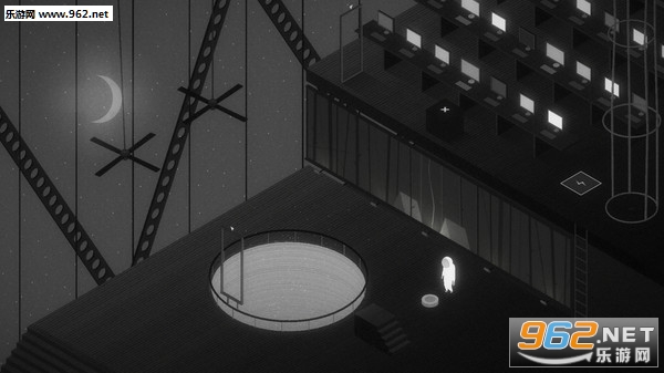 游戏在塑造环境方面十分简洁,但是却有处处留有一丝希望。阴暗的树林中经常有闪着蓝光的蝴蝶飞过。死气沉沉的办公室大楼外却有一丝皎洁的明月高高挂起,通过对比通过一丝丝光线的留存,游戏不仅将黑白灰三色的应用展现到了极致,更将游戏的整体氛围完美烘托其中。