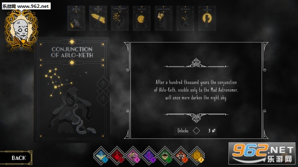 首先,选择你想要召唤哪一种法术,这样系统就会提示你需要做什么,你将有6个回合的时间来建立召唤意识所需要的构架。你每个回合可以访问一个未知,并尝试了解你所在未知的洛夫克拉夫特式故事。