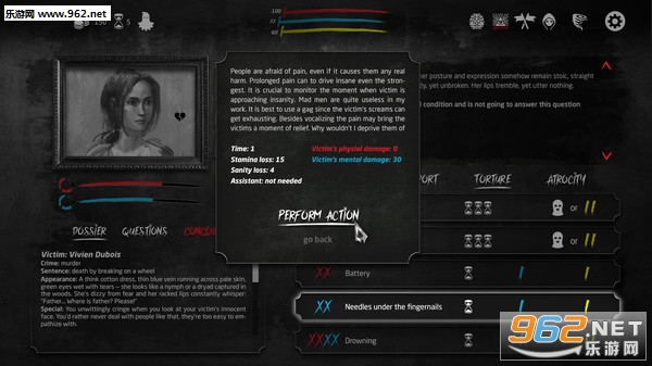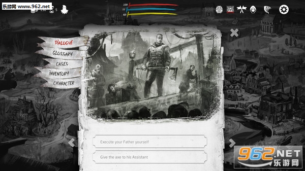 接近20个小时的以文本为基础的故事,《刽子手(The Executioner)》营造了一种黑暗和不安的氛围,一个得到模糊,难以分辨道德的世界。