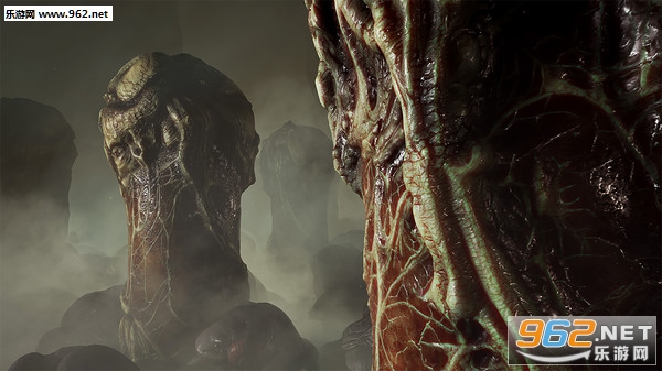 虽然不是恶心的秽物,但由虚幻4渲染过的世界显得格外的逼真,怎么说呢,就像是将《星际争霸》里的虫族所有单位来了一个高清特写..跳动的心脏、半边脑袋的人形怪物啥的,我去..要不是看游戏的语言中没有俄语我真的就一位是战斗民族做的了,真特么刺激。