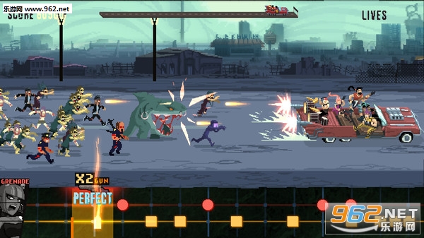 《鼓点英雄(Double Kick Heroes)》是一款让你玩得High得睡不着的节奏射击游戏。在传统的射击游戏中融入了弥漫着“死亡”的硬核金属!摁下随之而来的鼓点,随着摇滚车的节奏干掉那些玩儿命追你的丧尸们!
