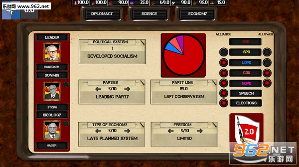 游戏的内容已经把东德续到了1997年并顺便把苏联搞解体。在东德转向欧洲共产主义民主化后,人民生活水平得到了极大的提高,大选后的SED控制了全部400议席的350个,那么问题来了,我们怎么才能去解放统一西德呢?