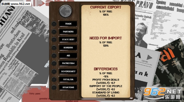 这游戏不错,通过大量的文字叙述和老纪录片的形式讲述了这段时间的历史,而玩家将扮演国内领导人一步步的将高高的柏林墙推倒,联合群众的力量向社会主义发展并走向正规。而更为讽刺的是,这款游戏由俄罗斯的工作室制作而成。